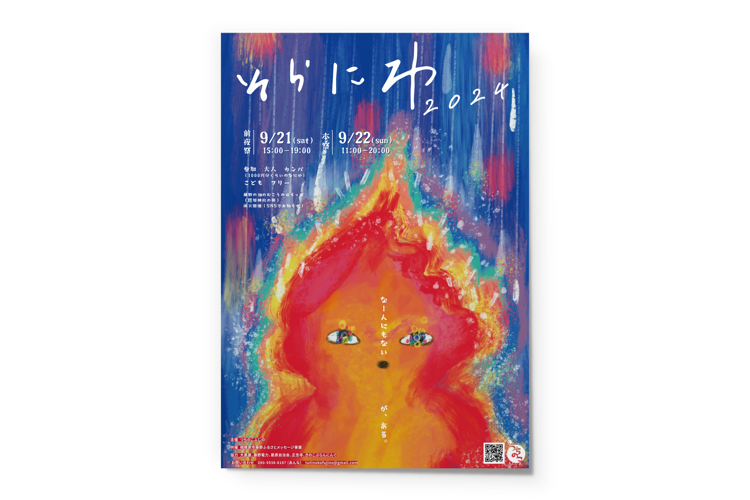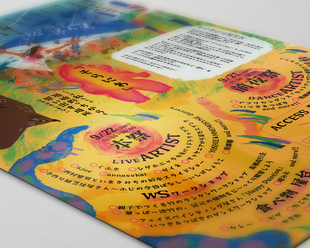 野外フェス「そらにわ」2024。 大好きなフェスなので、今年もご依頼をいただけて嬉しいです。 そらにわメンバーは熱くエネルギッシュでいつも若々しいエネルギーを浴びて元気をもらっています。 イメージの擦り合わせで、「土臭い」「雨のイメージ」「気持ち悪い感じでも良い!」などイメージの共有をしました。 少しお時間をいただき「明日制作しよう」と決めた夜、担当者様から「インスピレーションが降りてきた」と連絡がありました。そこから「そらにわ ほのおちゃん」が誕生。 描いたのは私ですが、担当者様の想いから産まれた子だと感じています。 素晴らしいイメージ共有の体験、ありがとうございました。