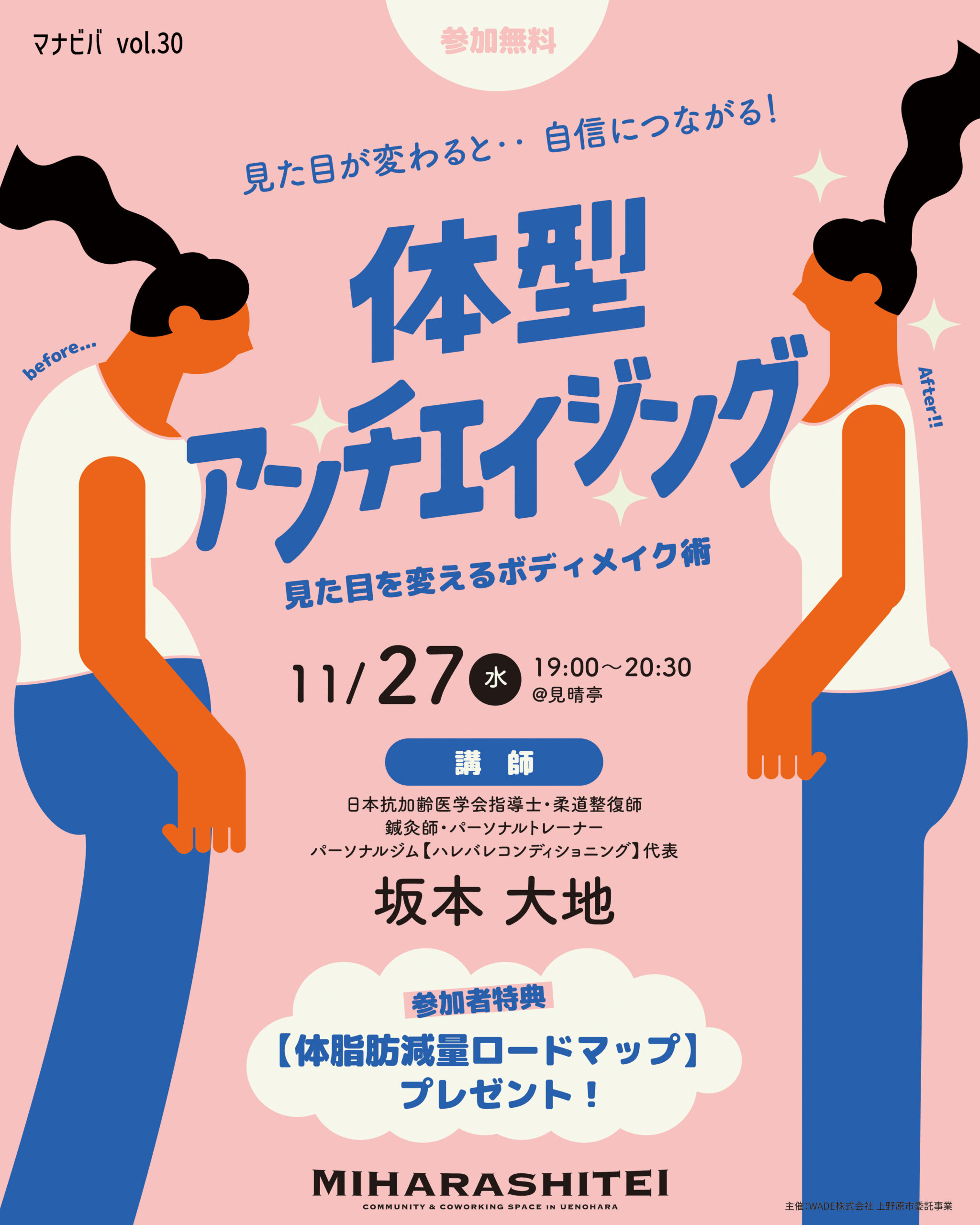 マナビバvol.30 今回はIllustratorのみで作成し、イラストの女性はIllustratorの丸や長方形を組み合わせて作りました。